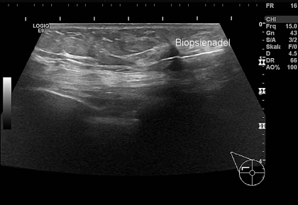 Wir entnehmen die Biopsien in aller Regel unter Ultraschallsicht, selten mittels der Röntgenmethode der "Stereotaxie".